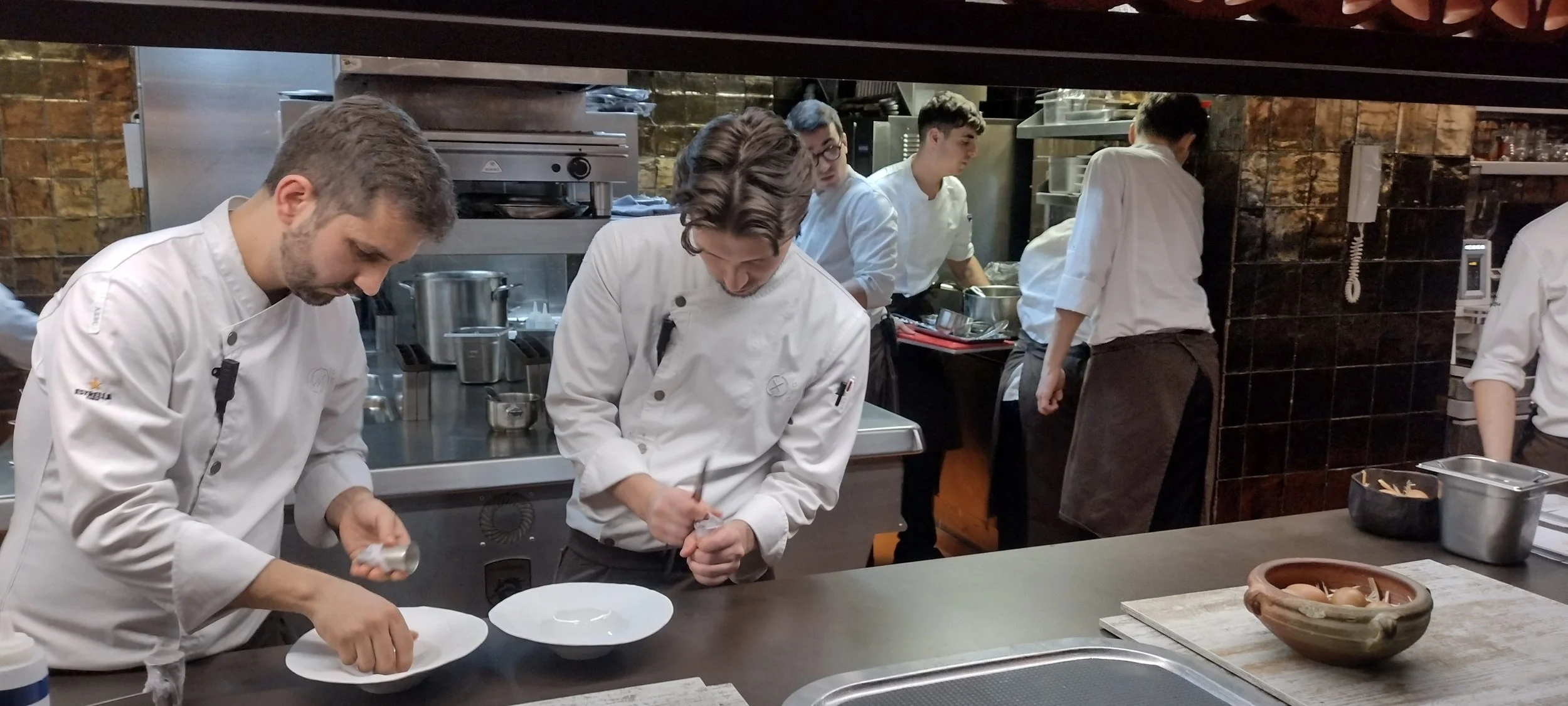 Verantwortet von den El-Bulli-Erben Oriol Castro, Mateu Casañas und Eduard Xatruch, die tragende Säulen im Team der Adrià-Brüder waren und das Erbe des vermutlich prägendsten Restaurants dieses Jahrtausends personifizieren wie sonst niemand (außer natürlich den Brüdern selbst).