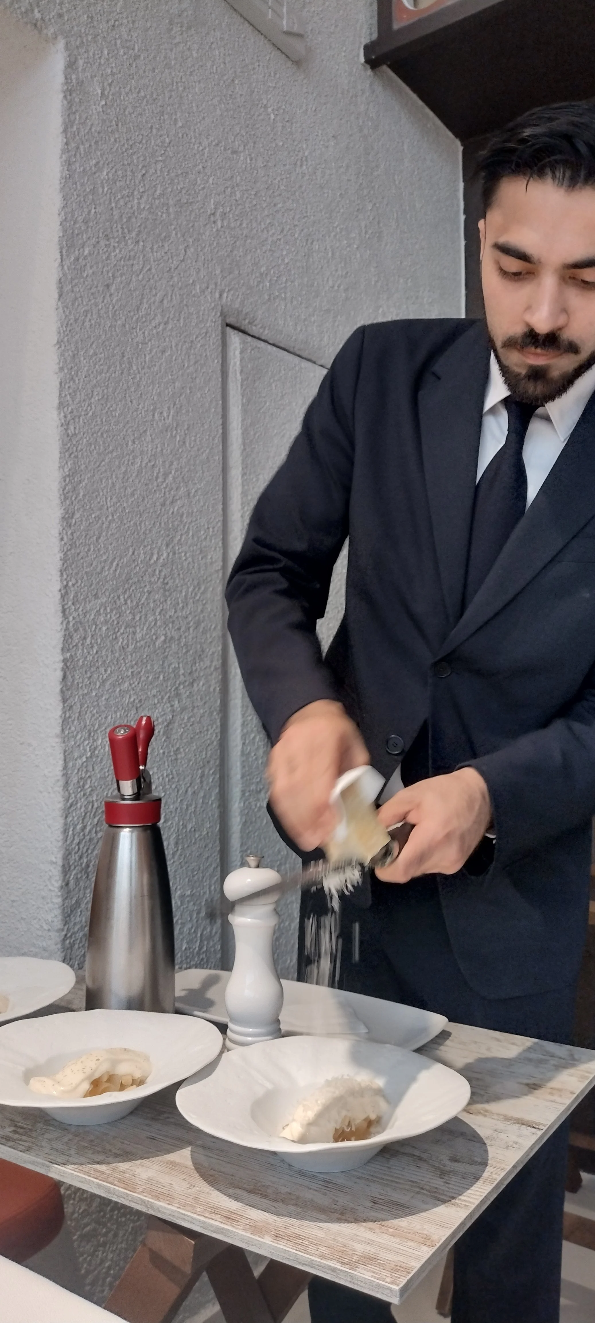 Alle Servicekräfte sind indessen nett, herzlich und enthusiastisch - nicht zuletzt in der Interaktion mit dem begleitenden Kind. Das macht großen Spaß. Will man eine Deko mitnehmen, kommt sie noch mal neu erstellt und mitnahmefertig. Fällt eine Speise angesichts meiner Ungeschicklichkeit auf den Tisch, kommt sie sofort nach. Alles mit Humor und Charme. Und trotzdem dezent. Das ist große Gastfreundschaft.